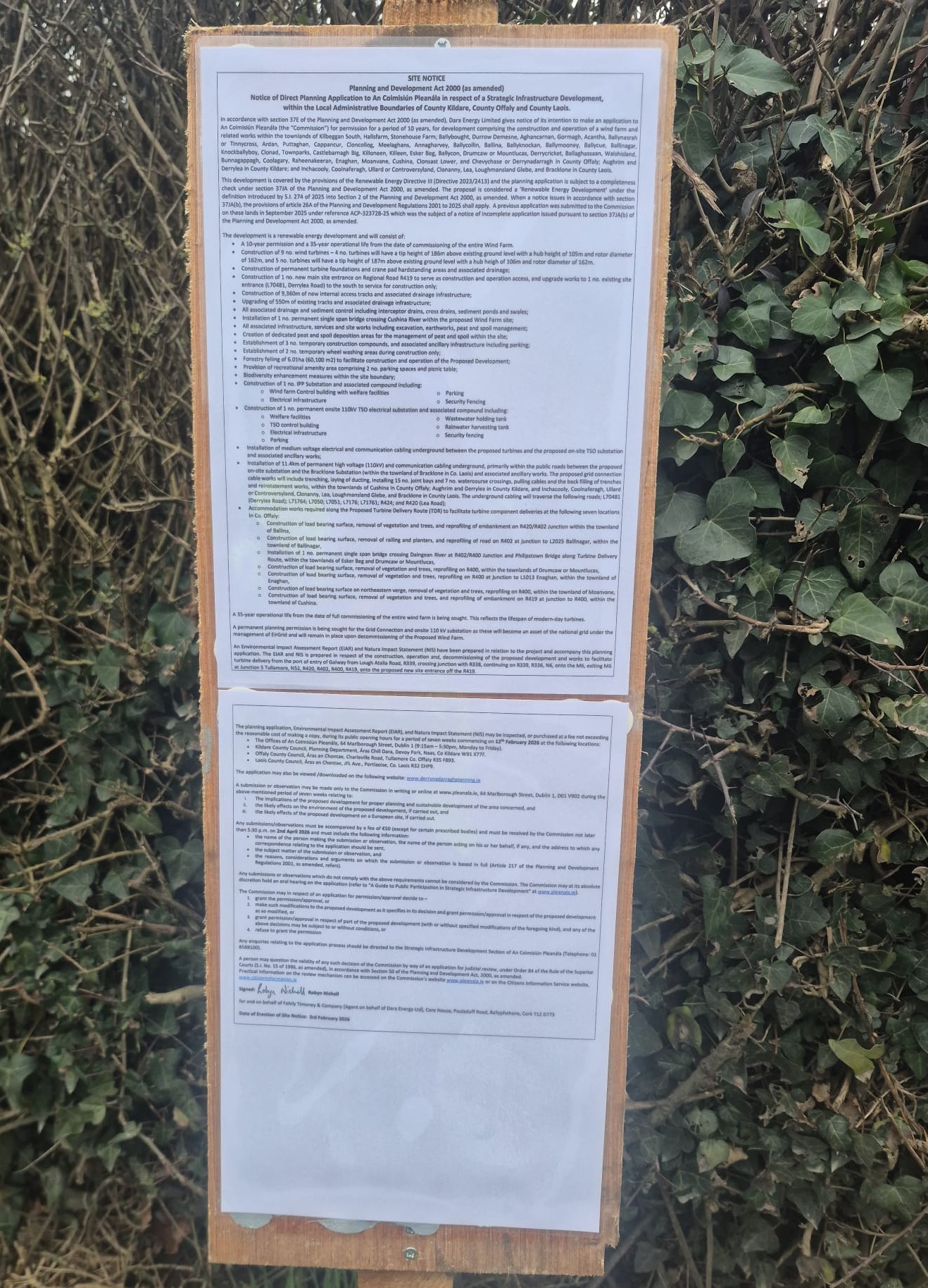 located across various townlands in County Kildare, Offaly and Laois. (www.derrynadarraghplanning.ie).